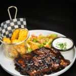 $52.000Jugosa y tierna costilla de 400 gr bañada en nuestra salsa BBQ de ron, con notas dulces y ahumadas que se funden en cada bocado. Acompañado de ensalada fresca de la casa y la guarnición que elijas.