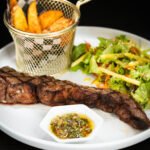 $40.000Corte generoso y jugoso de 250 gr , preparado al término de tu preferencia. Una carne suave, con ese toque ahumado y lleno de sabor que lo hace irresistible. Acompañado de ensalada fresca de la casa y la guarnición que elijas.